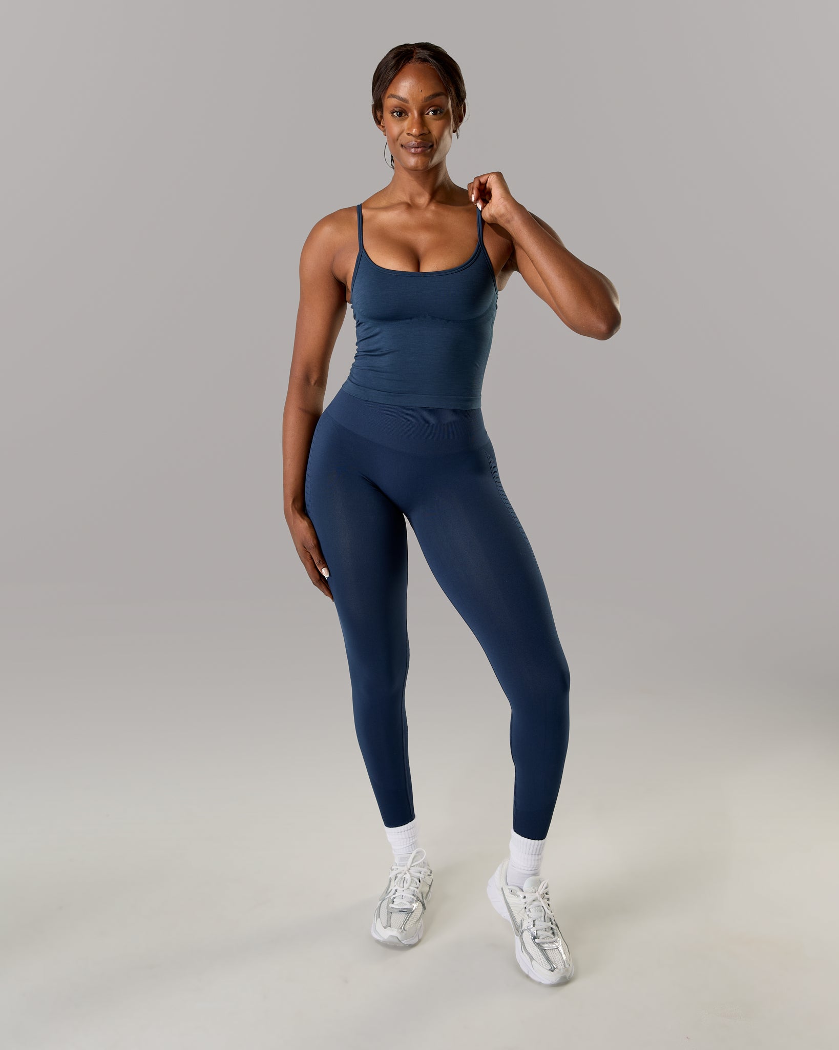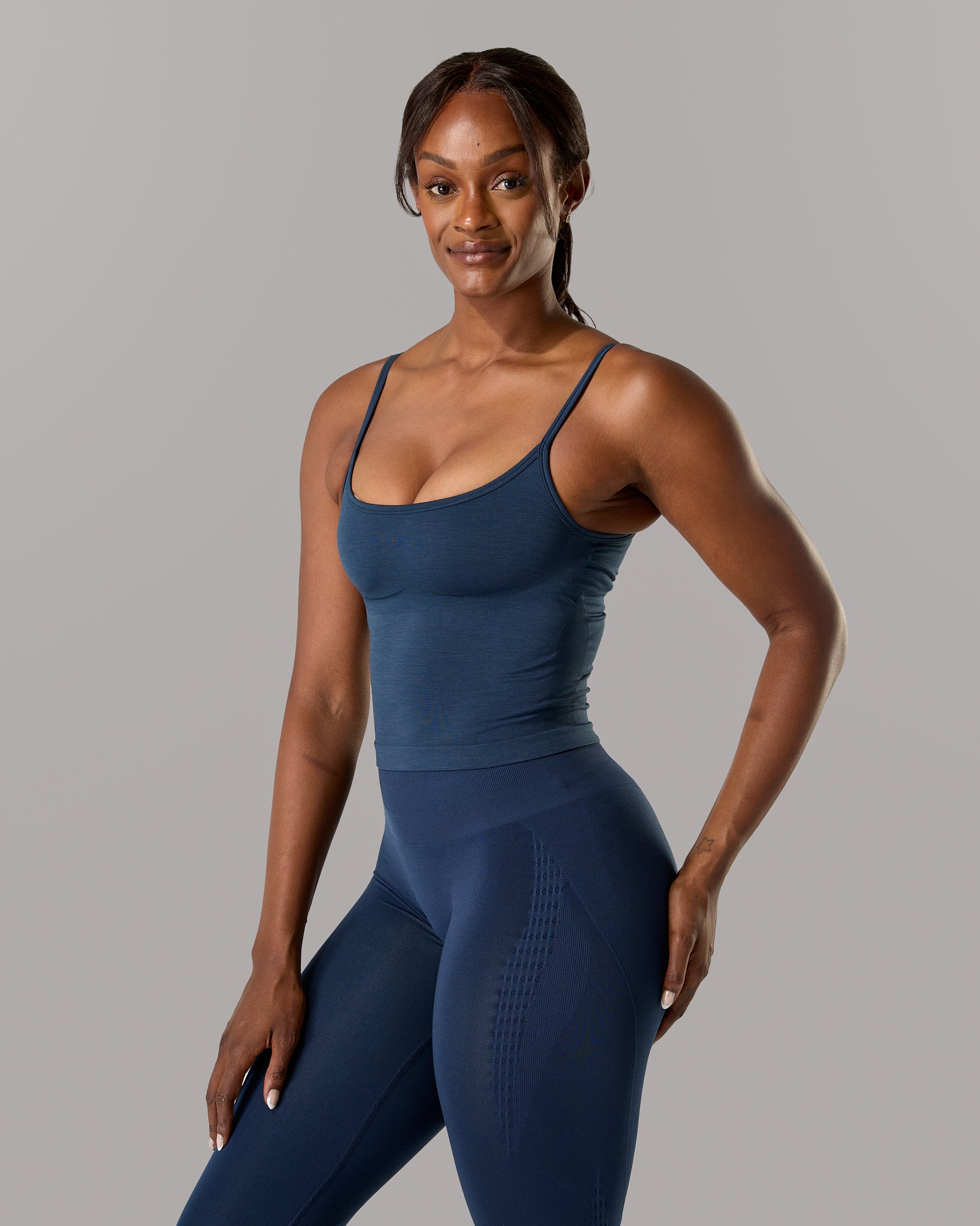 We designed the Push Tank to combine a sleek, body-hugging silhouette with integrated support for effortless comfort. With adjustable straps and a built-in bra, it delivers a smooth, secure feel that moves naturally with your body.