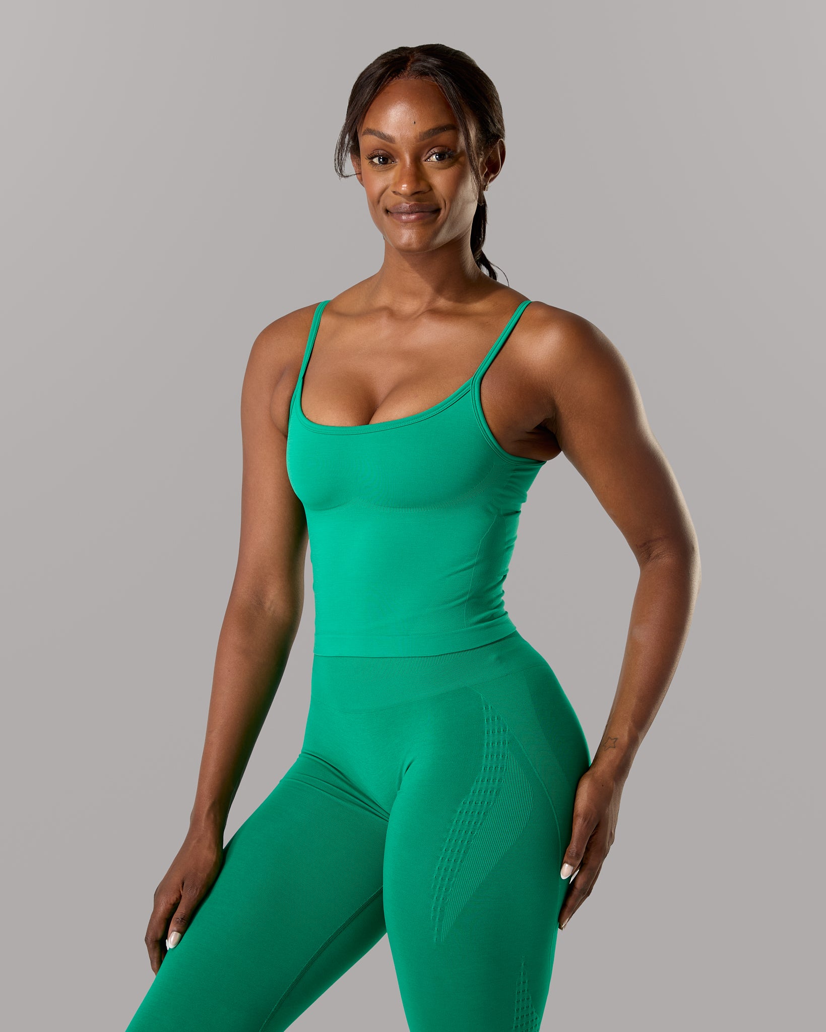 We designed the Push Tank to combine a sleek, body-hugging silhouette with integrated support for effortless comfort. With adjustable straps and a built-in bra, it delivers a smooth, secure feel that moves naturally with your body.