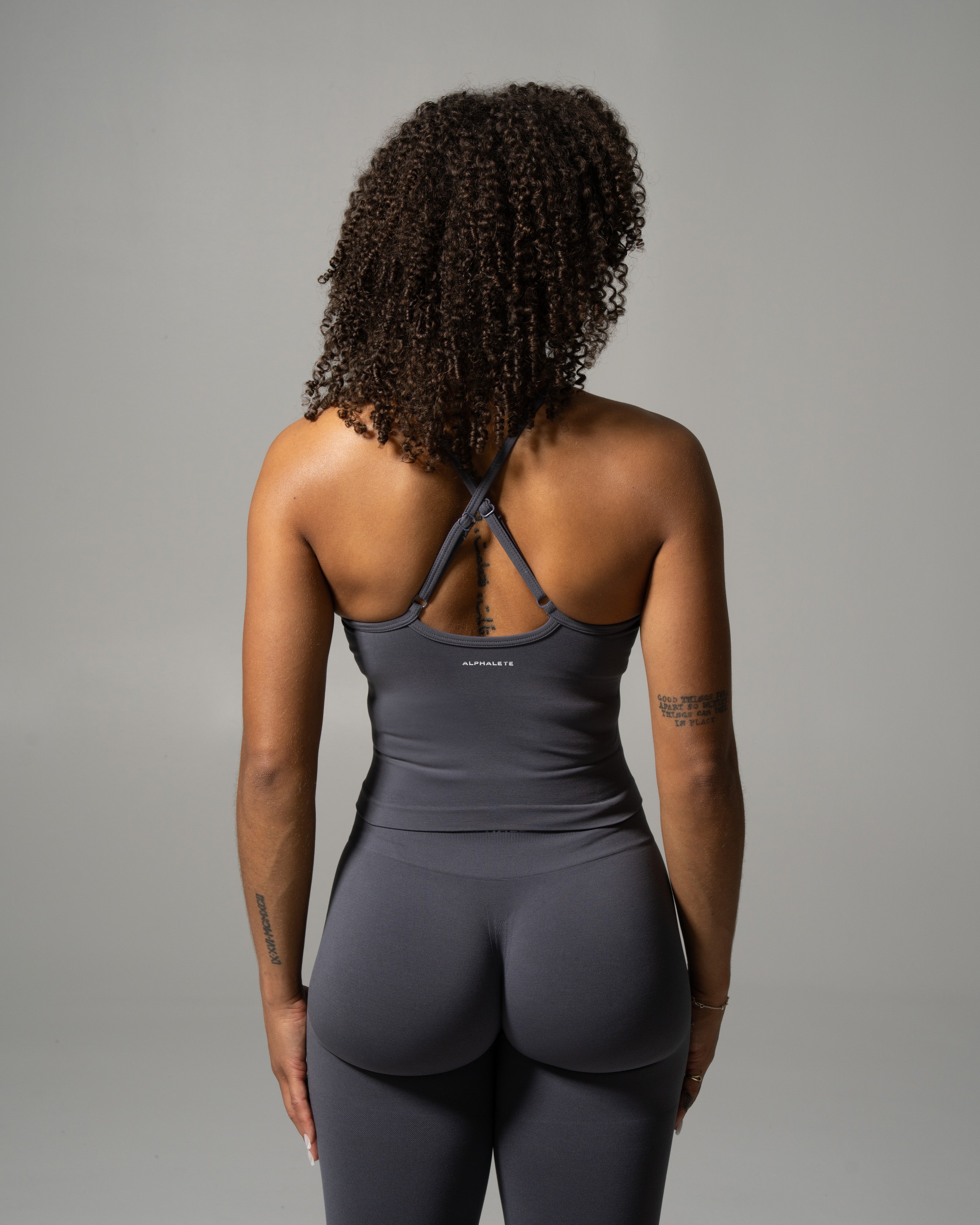 We evolved the original Push Tank with a flattering V-neck and strappy back while maintaining the supportive, body-hugging fit you love. Built for studio sessions and everyday wear, it delivers a smooth, secure feel with effortless versatility.